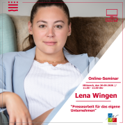 Teil 2 der Online-Seminarreihe befasst sich mit dem Thema Pressearbeit. PR für das eigene Unternehmen zu betreiben, haben bisher nur wenige Unternehmen auf der Agenda. Hier setzt Referentin Lena Wingen, Public Relations Beraterin an. Es geht um praxisorientierten Inhalt, der sich unmittelbar umsetzen lässt.