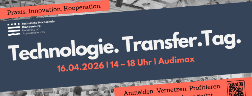 Am 16. April 2026 wird die Technische Hochschule Brandenburg (THB) erneut den Technologie.Transfer.Tag (TTT) ausrichten – das zentrale Forum für den Austausch zwischen Wissenschaft und Wirtschaft in der Region. Die Veranstaltung wird Unternehmen, Start-ups und Interessierten spannende Einblicke in aktuelle Forschungsprojekte, innovative Ideen und zukunftsweisende Entwicklungen an der THB bieten.
